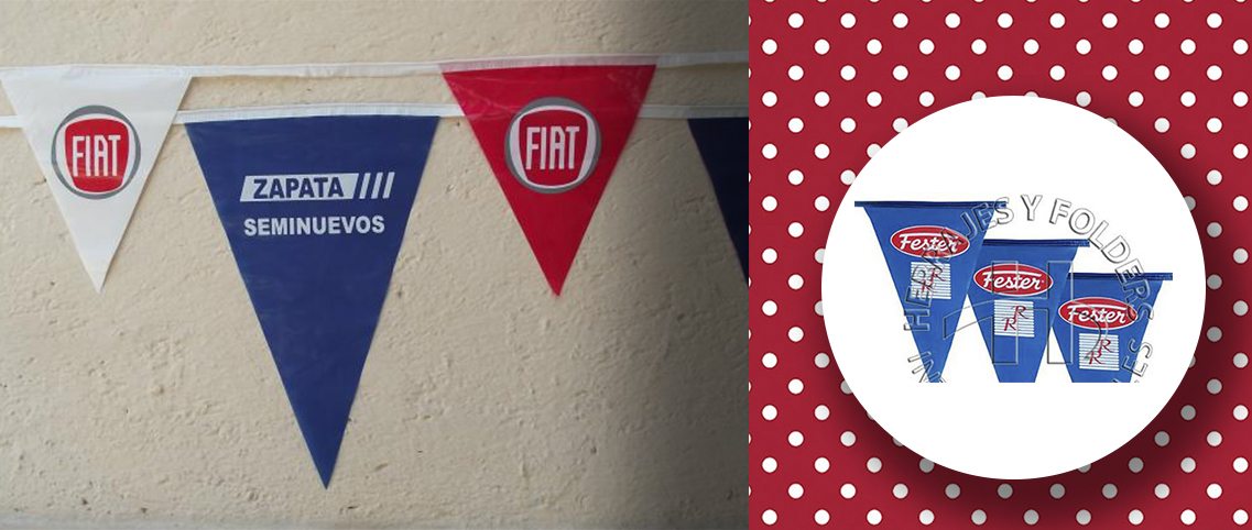 colores mencionados anteriormente. Banderín publicitario de colores a medida